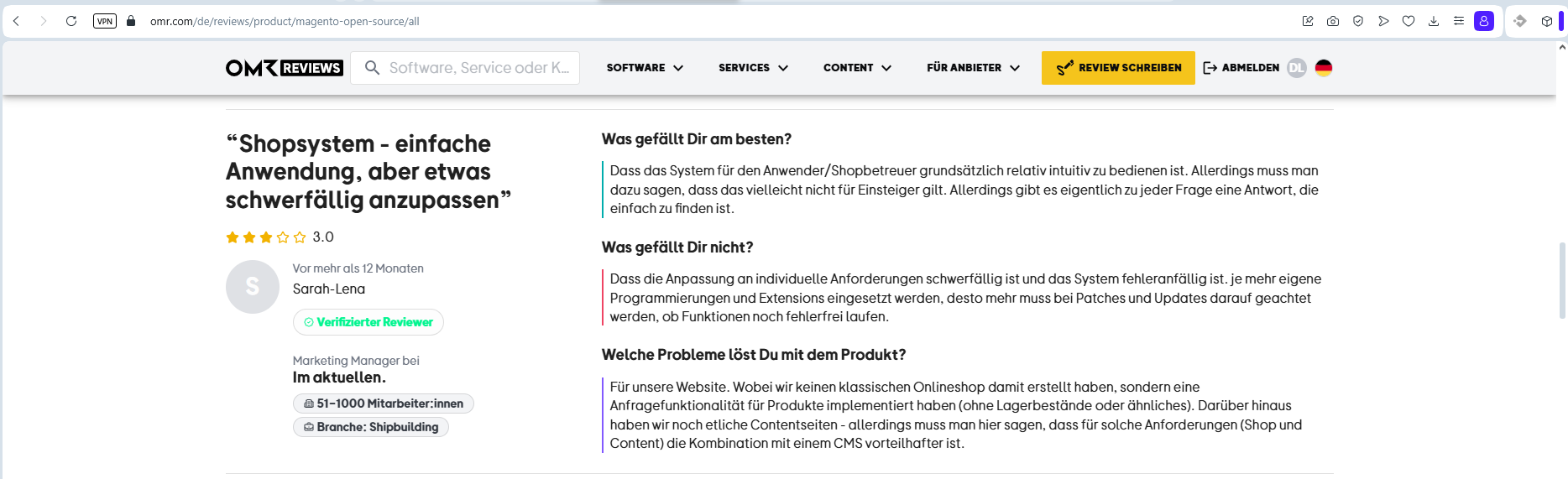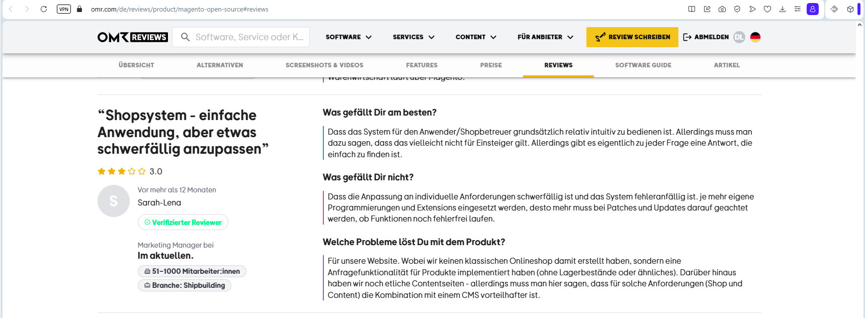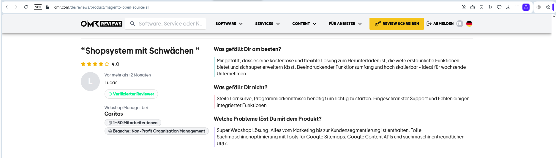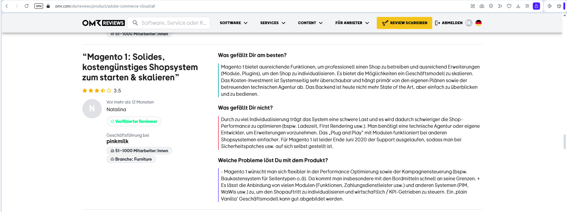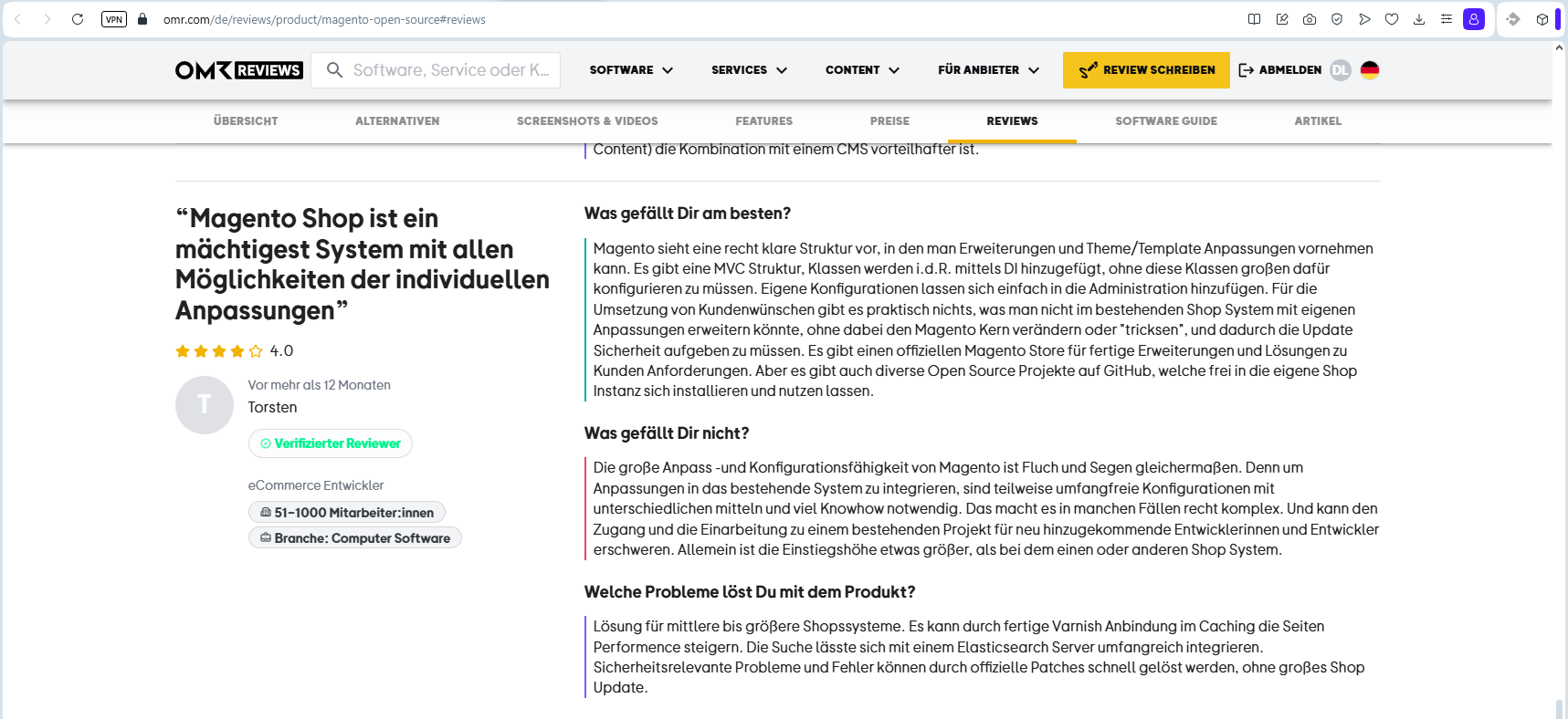 - Magento-Nutzer berichten, dass die Enterprise-Version so teuer ist, dass man in manchen Fällen auf Open Source + Eigenentwicklungen zurückgreifen sollte.