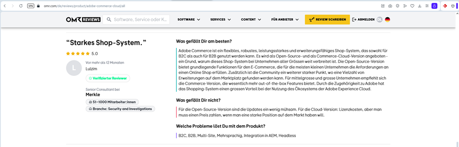 - Zu Adobe Commerce gibt es keine öffentlichen Preis-Informationen. Analysen berichten jedoch von großen Preisspannen, die deutlich über dem typischen Mittelstandsbudget liegen.